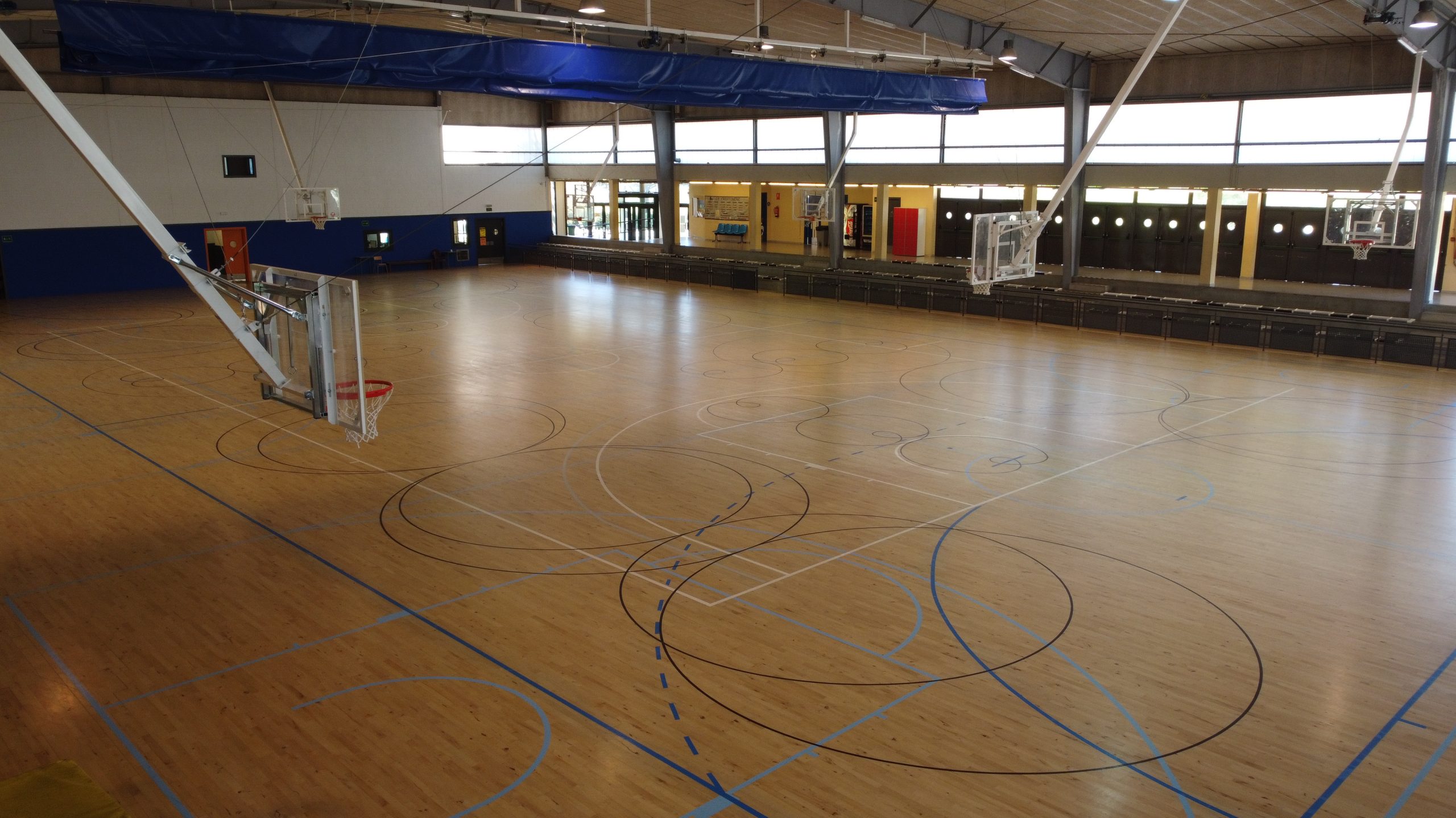 El proyecto ha incluido la renovación total y ampliación de las gradas y vestuarios, renovación de las instalaciones de ACS y AFS, instalación de climatización y mejora del aislamiento, creación de nuevos espacios (bar, sala técnica, almacén…); adecuación de las instalaciones a la normativa vigente en materia de instalación, accesibilidad y contra incendios, renovación del pavimento de la zona de pista e instalación del nuevo boulder y rocódromo existente.
