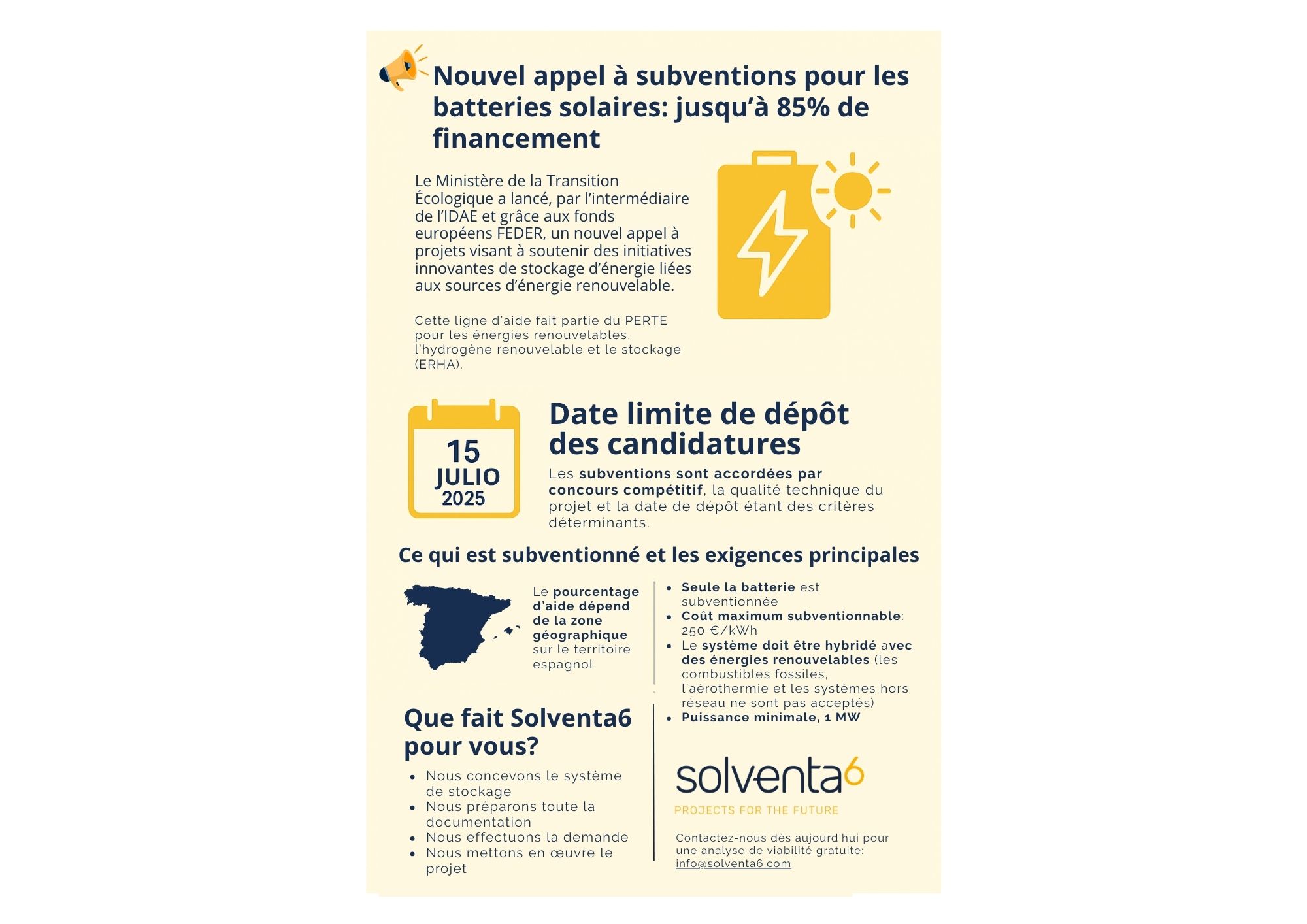 - Seule la batterie (système de stockage) est éligible à la subvention.